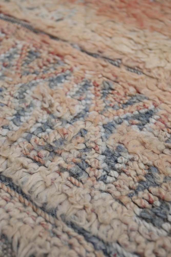 Die Boujad-Teppiche werden von Hand in der gleichnamigen Region in Marokko auf traditionellen Holzwebstühlen hergestellt. Sie sind durch ihre von der Sonne ausgeblichenen Farben erkennbar und verleihen einem Interieur viel Charakter.