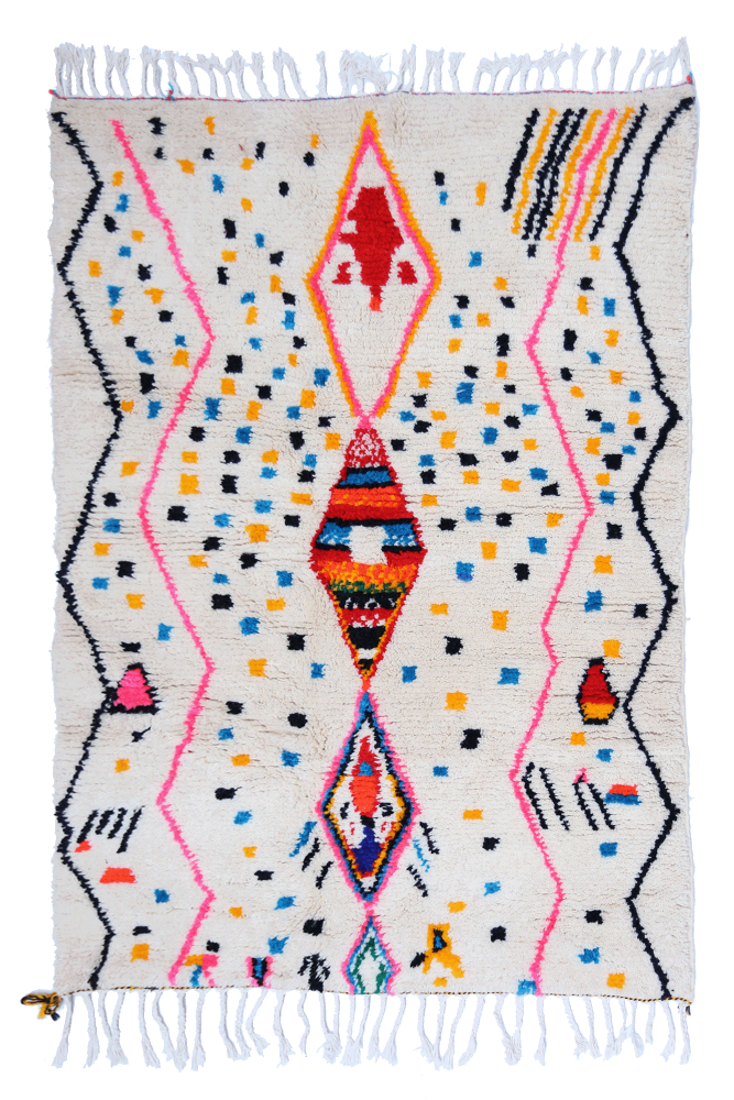 Der durchschnittliche Berber-Teppich ähnelt keinem gewöhnlichen Industrieteppich: Er ist ein außergewöhnliches Stück, ein Zeugnis der Kreativität der Weberin. Diese nutzt sowohl ihre eigene Geschichte als auch die Geschichte ihres Stammes, um Muster auf dem Teppich zu kreieren. Das verleiht ihm all seinen Charme. In unserem Online-Shop ist jeder Teppich nur in einer handgefertigten Ausführung erhältlich.. Sie werden definitiv ein Modell finden, das Ihnen ins Auge sticht, sei es durch die verwendeten Farben oder Muster. Es wird perfekt und einfach zu Ihrem dekorativen Stil passen, sei es vintage, Bohème-Chic oder zeitgenössisch. Mit der Vielzahl an verfügbaren Designs werden Ihre persönlichen Vorlieben befriedigt. Wählen Sie den handgefertigten mittelgroßen Berberteppich, der Ihren Anforderungen an Proportionen, Fläche und Muster entspricht.
