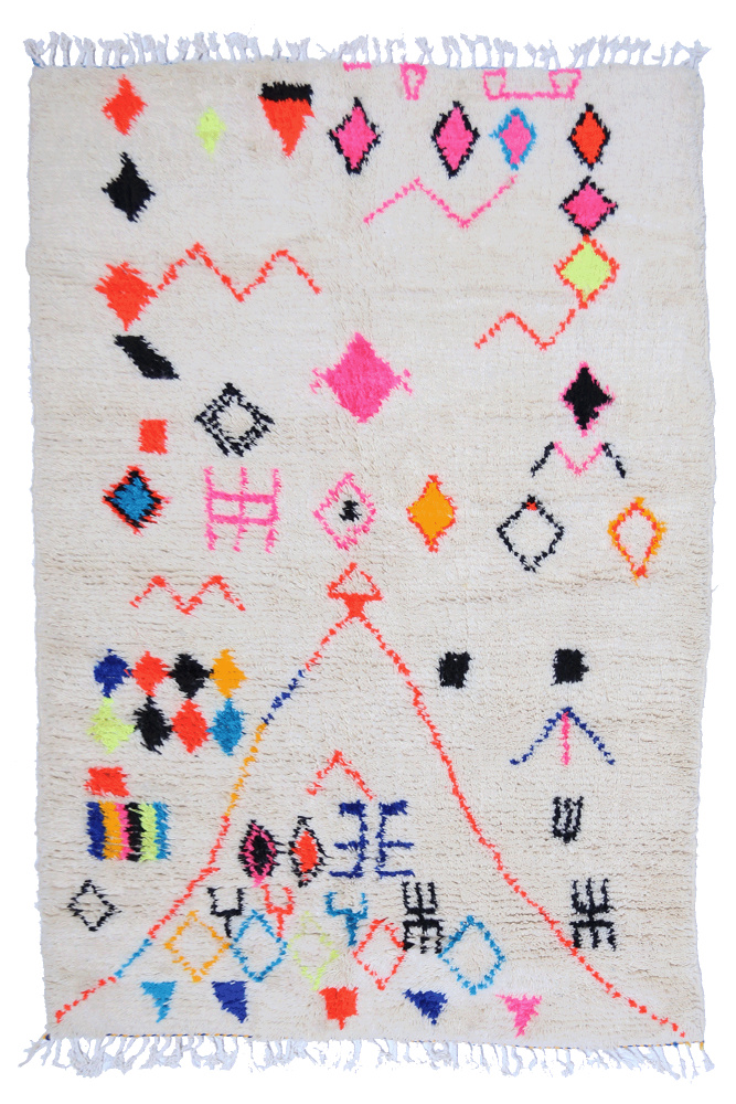 Azilal-Teppich, , Béni Ouarain-Teppich, , Boucherouite-Teppich, , Boujad-Teppich Oder auch Kilim-Teppich : Jeder Stamm hat seine eigenen Merkmale und ist anhand der verwendeten Farben, Techniken oder Muster erkennbar. In einem klassischen und modernen Interieur sorgt ein großer Berberteppich für ein faszinierendes Ergebnis. Er veredelt Möbel aus Stahl oder dunklem Holz mit zeitloser Schönheit. Liebhaber von schlichteren und zurückhaltenderen Innenräumen werden von ihm verführt. beiger Teppich Ein zartes Grau oder Grau mit einigen farbigen oder schwarzen Mustern. Ideal, um eine natürliche und harmonische Atmosphäre zu schaffen. Lust auf Schwung und Fantasie? Lassen Sie sich von großen marokkanischen Teppichen mit zahlreichen Rauten und ungewöhnlichen Mustern verführen. Die Farben können kräftig oder pastellfarben sein, je nach Ihren Vorlieben. Aber eines ist sicher: Ihr Teppich wird zweifellos die Blicke Ihrer Gäste auf sich ziehen.