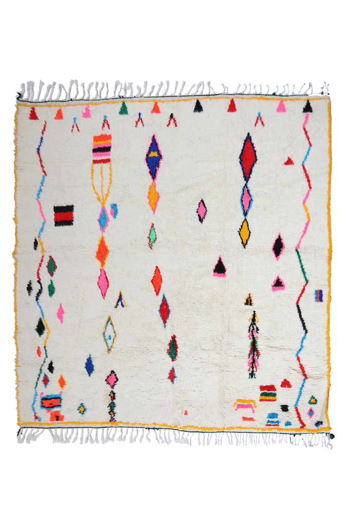 Der quadratische Berberteppich ist daher eine ausgezeichnete Wahl, um sein Zuhause zu schmücken und zu strukturieren. Mit seinen geraden Linien und geometrischen Mustern bringt er Modernität mit sich. Es ist eine sehr dynamische Wahl, die dennoch komfortabel und gemütlich bleibt. Bei THEM finden Sie Modelle aus allen Stämmen des marokkanischen Atlas, mit denen wir eng zusammenarbeiten. Unsere orientalischen Teppiche sind von höchster Qualität und werden unter Einhaltung der berberischen Traditionen von den Frauen dieser afrikanischen Völker gewebt. Wir unterstützen die lokale Wirtschaft und dieses alte Handwerk durch faire Bezahlung und angemessene Preise.. Diese nachhaltige Beschaffung ist für uns sehr wichtig. Und wenn Sie einen bestimmten quadratischen Berber-Teppich im Kopf haben, senden wir Ihre Anfragen an die marokkanischen Weberinnen, die ihre Inspirationen und Ihre Wünsche mischen werden, um ein zu schaffen. It seems that your message is incomplete. Please provide the text you would like me to translate from French to German.Maßgeschneiderte Berber-APIs ! !
