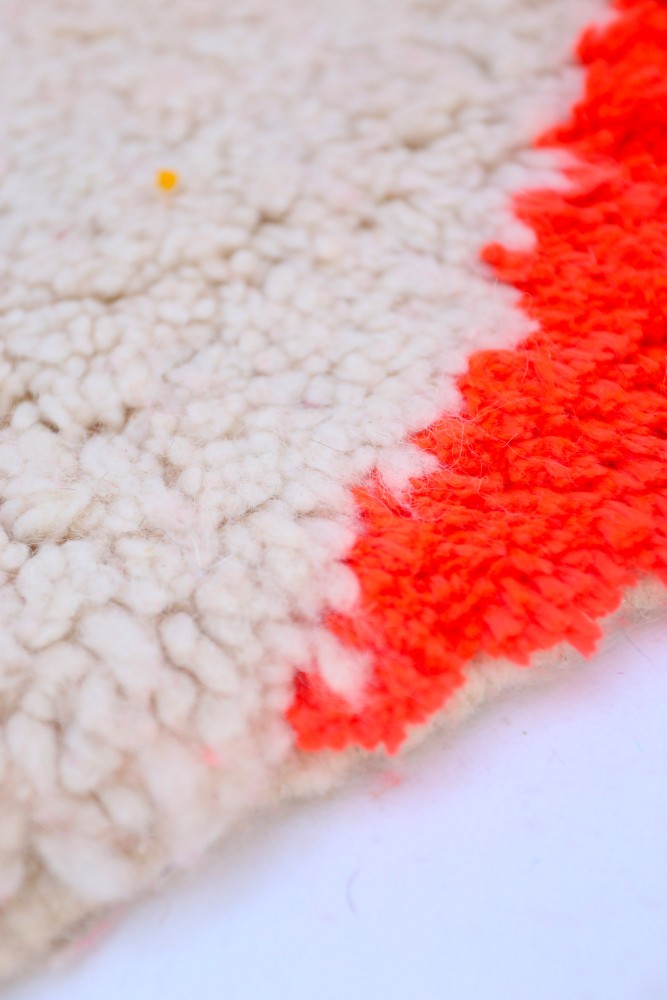 Dieser als Azilal bezeichnete Berber-Teppich hat seinen Namen von der Region Azilal in Marokko, wo er auf einem traditionellen hölzernen Webstuhl von Hand gefertigt wurde. Die Muster repräsentieren die Stimmungen, Lieben und Leiden der Weberin zum Zeitpunkt ihrer Herstellung. Nachdem dieser bunte Berber-Teppich erstellt wurde, wird sie einen völlig anderen anfertigen, je nach ihren aktuellen Emotionen. Jedes Stück ist also einzigartig.