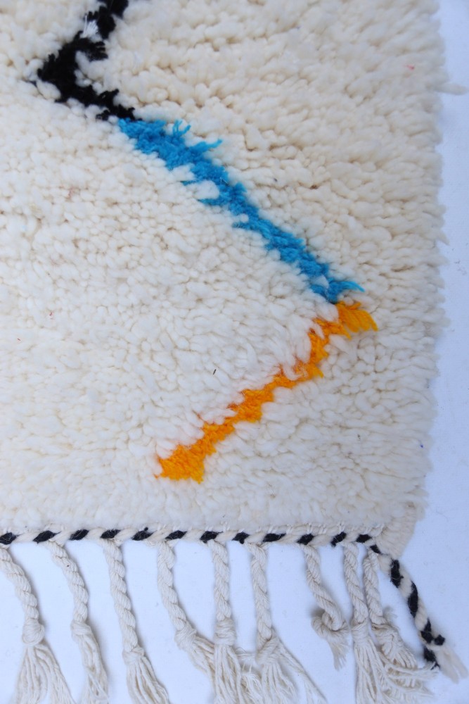 Azilal-Teppich aus Schafwolle, handgefertigt auf einem traditionellen Webstuhl in den Bergen des Atlasgebirges in Marokko.