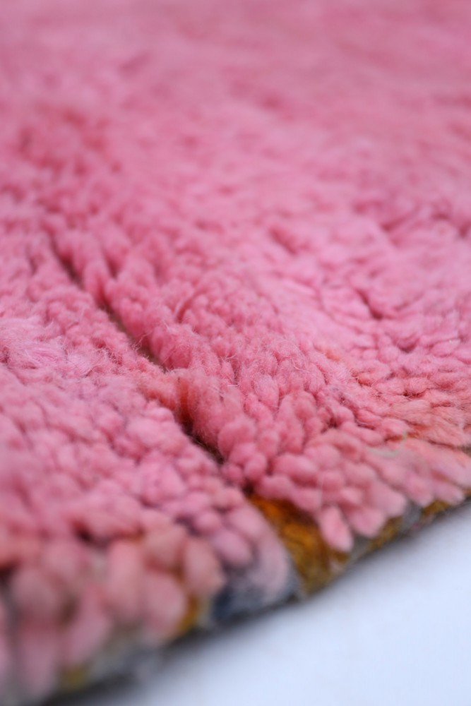 Dieser Berber-Teppich, genannt Azilal, hat seinen Namen von der Region Azilal in Marokko, wo er von Hand auf einem traditionellen hölzernen Webstuhl hergestellt wurde. Seine Muster spiegeln die Stimmungen, Lieben und Leiden der Weberin zum Zeitpunkt seiner Entstehung wider. Nachdem dieser bunte Berber-Teppich hergestellt wurde, wird sie einen völlig anderen Teppich herstellen, abhängig von ihren aktuellen Emotionen. Jedes Stück ist daher einzigartig.