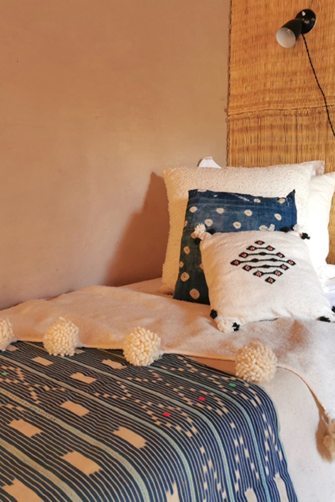 Dieser Stoff namens Bogolan wurde früher von malischen Frauen als Lendenschurz getragen. Handgewebt, wurde er dann mit natürlichen Elementen aus der Erde gefärbt und galt als mit vitalen Energien durchdrungen. Ein paar Stunden in der Sonne ließen die Pigmente fixieren.