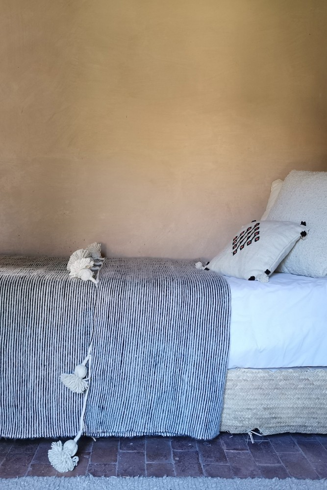 Handgewebte Wolldecke auf einem traditionellen Webstuhl in Marokko hergestellt. Kann als Decke auf einem Sofa oder Sessel oder als Tagesdecke verwendet werden.