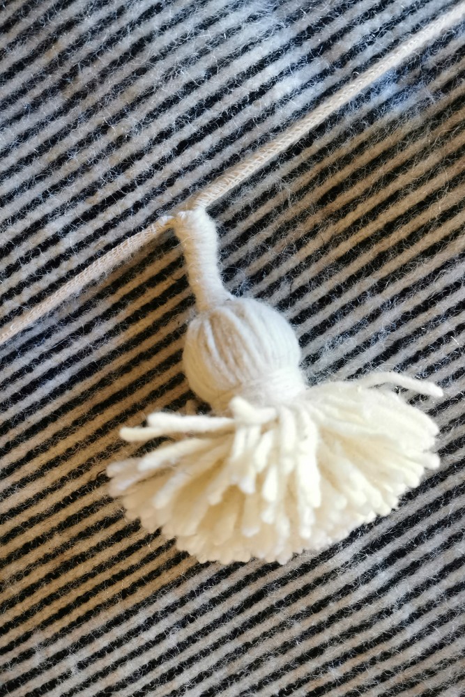 Schwarzer und weißer Berber-Pompon-Plaid. -