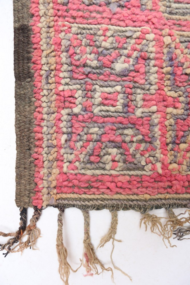 Dieser Berber Teppich, genannt Azilal, hat seinen Namen von der Region Azilal in Marokko, wo er von Hand auf einem traditionellen hölzernen Webstuhl hergestellt wurde. Seine Muster spiegeln die Stimmungen, Lieben und Leiden der Weberin zum Zeitpunkt seiner Kreation wider. Sobald dieser bunte Berber Teppich erstellt wurde, wird sie einen völlig anderen anfertigen, abhängig von ihren aktuellen Emotionen. Jedes Stück ist daher ein Unikat.