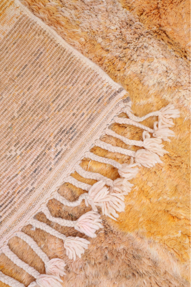 Dieser Berber-Teppich namens Azilal leitet seinen Namen von der Region Azilal in Marokko ab, wo er von Hand auf einem traditionellen hölzernen Webstuhl hergestellt wurde. Seine Muster spiegeln die Stimmungen, Lieben und Leiden der Weberin zum Zeitpunkt seiner Entstehung wider. Nachdem dieser bunte Berber-Teppich fertiggestellt ist, wird sie einen völlig anderen Teppich anfertigen, abhängig von ihren aktuellen Emotionen. Jedes Stück ist also ein Unikat.