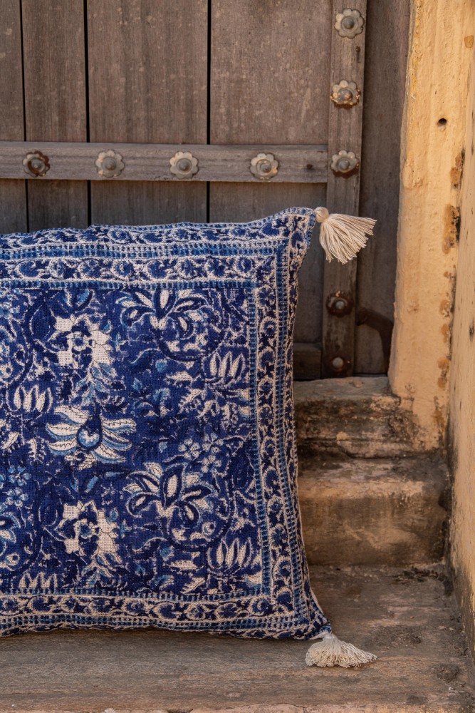 Die Muster werden ebenfalls vollständig von Hand gefertigt, dank der Blockdruck-Technik: Holzblöcke, die von Hand geschnitzt und in natürliche Farbstoffe getaucht werden, sorgen für ein einzigartiges und authentisches Ergebnis.