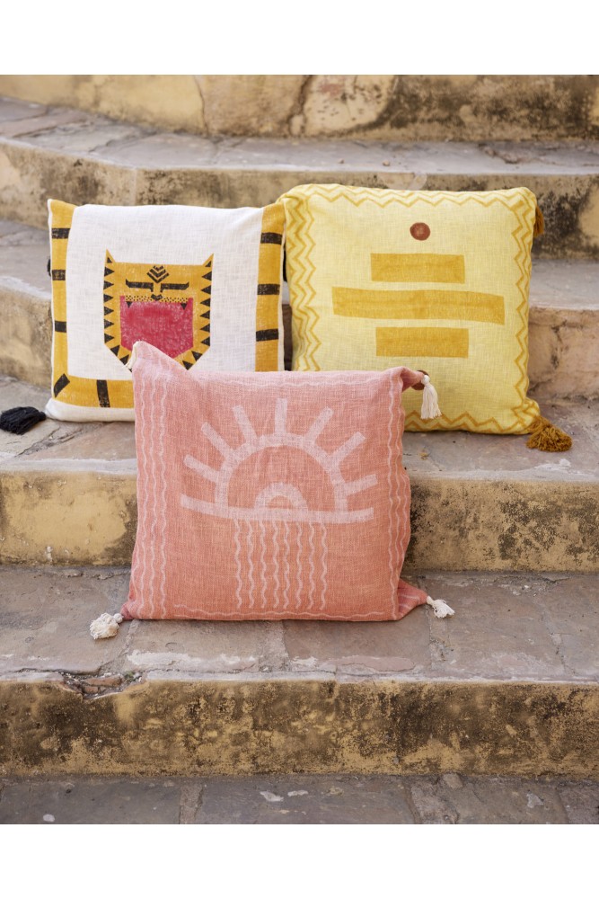 Waschen Sie Ihren Kissenbezug von Hand oder in der Maschine bei 30 °C. Trocknen Sie ihn an der Luft, um die Weichheit der Baumwolle und die Leuchtkraft der Muster zu bewahren.