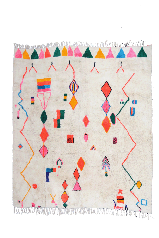 Opt for a giant Berber carpet from THEM and you are guaranteed to get a unique, authentic, durable, and responsible piece.We advocate for fair trade by minimizing intermediaries between us and Moroccan weavers as much as possible. THEM pays all actors a fair price to support the local economy. Each carpet is charged with strong symbolism, and we are committed to promoting this diversity and tradition. No matter what type of carpet you are looking for, our Moroccan carpets are highly resistant and of exceptional quality. The ancestral weaving methods used, passed down from mother to daughter, ensure the longevity and strength of the carpets. Each design is a true work of art, with unique colors, patterns, or shapes. If you have specific preferences, feel free to share your requests with us, as we can also work with the weavers on custom designs. custom rug !