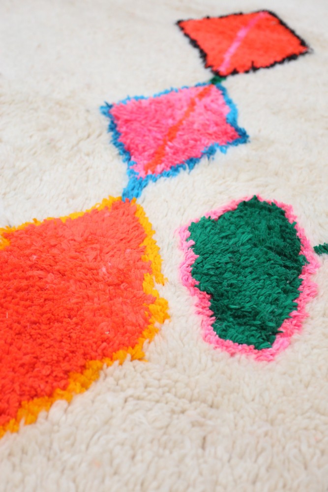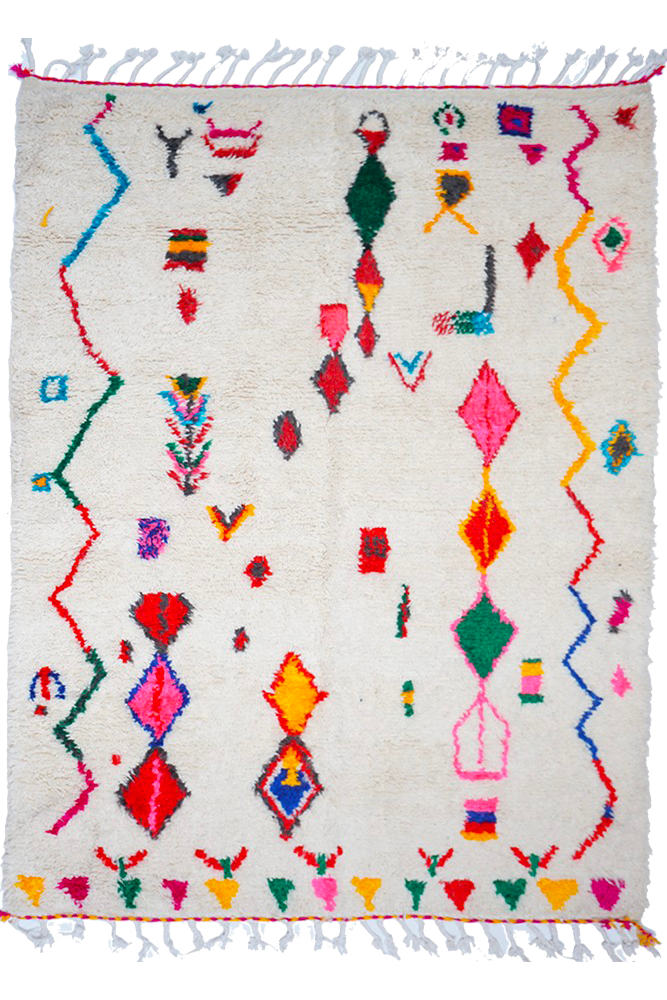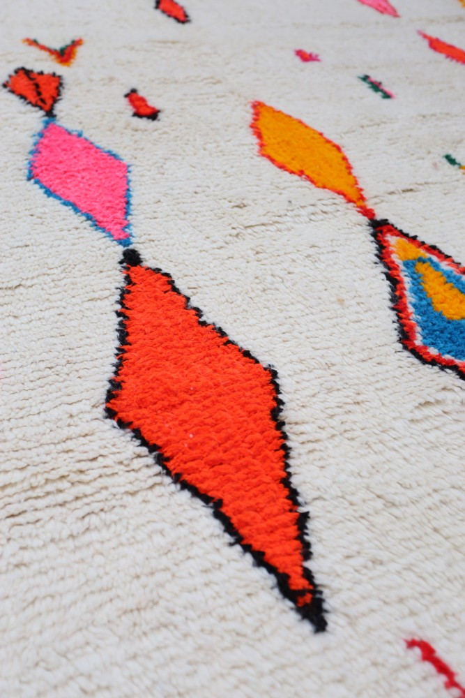 The giant Berber carpet is adorned with patterns, designs, and geometric lines. These symbols represent the history of tribes and/or weavers. We see an aesthetic design, but it is actually a tribal writing carrying messages such as fertility, family, protection, nature, etc. Berber diamond rug or even the Berber carpet with dots Diamonds, squares, and stripes are the most common, but there are also symbols like chevrons, zigzags, and triangles. Each Moroccan carpet is unique and tells its own story. But if you prefer a solid Berber rug, you will also find what you are looking for on our online store, with large rugs in solid colors to harmonize a monochrome decoration or, on the contrary, to play with a colorblock effect. For example, a large rug beige Berber rug can be brightened up by layering a small blue Berber carpet or a small colorful Berber carpet. Plain models are also very trendy.