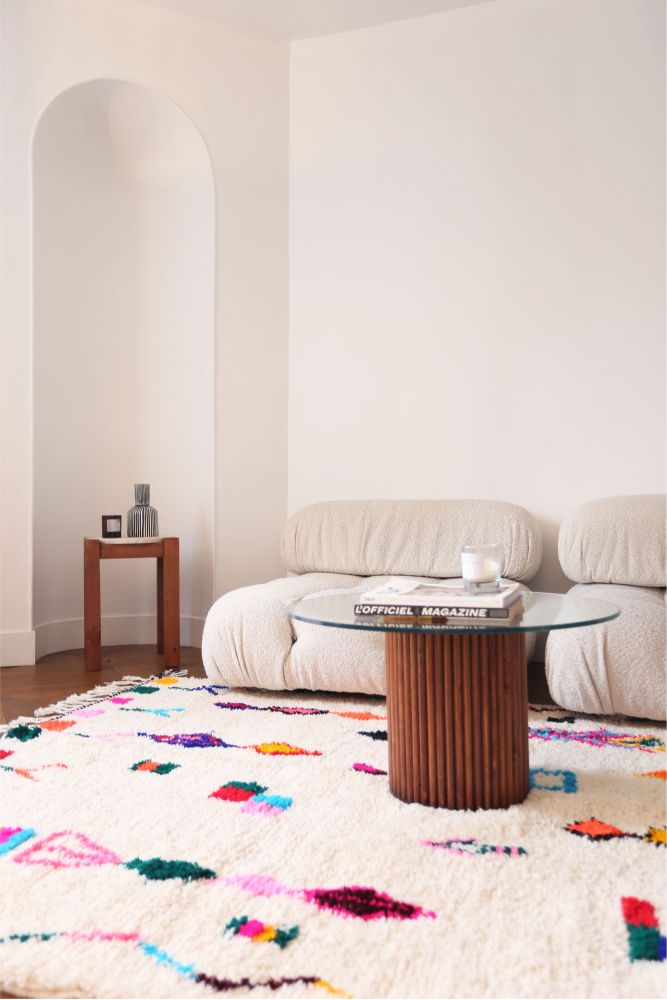 Looking for a red Berber carpet, you will find as many solid-colored Berber carpet models asmulticolored Berber carpets. This Moroccan rug captivates with the quality of its weaving, its colors, and its softness. More than just decorative objects, they tell the story of Berber women.There is not just one kind of Moroccan rug, but as many as there are weavers and tribes.. The Berber peoples of Morocco each imagined a different style of carpet, which reflected their sensitivity, expertise, and the available material resources.