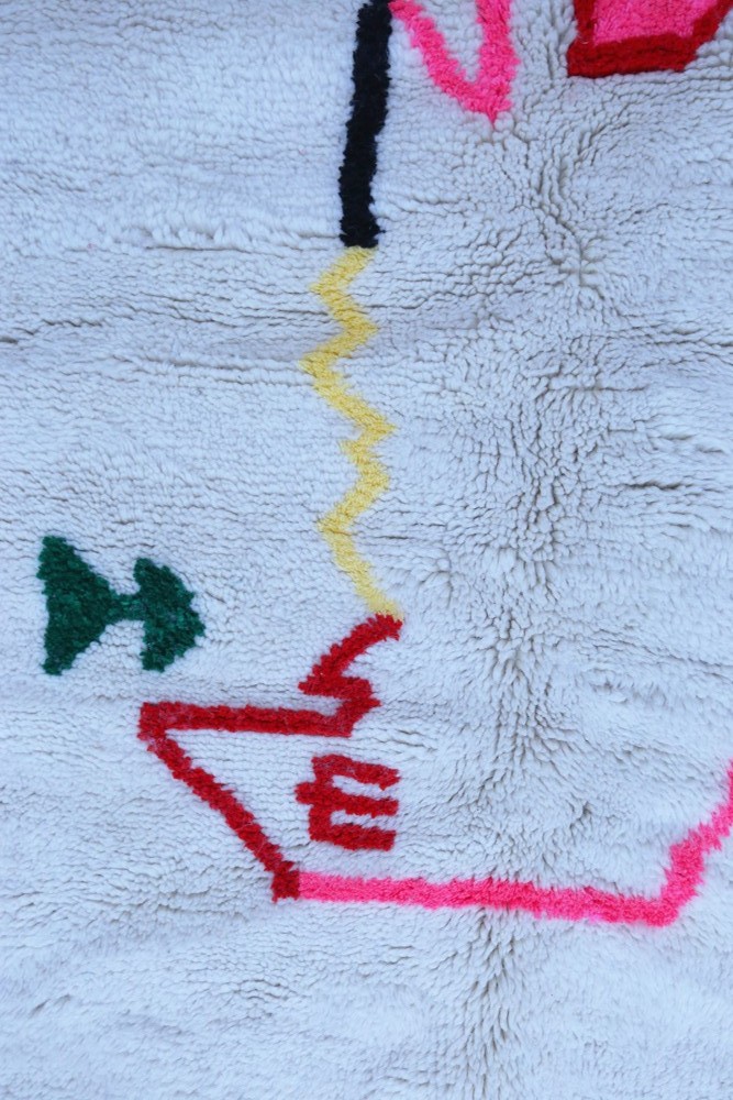 This Berber carpet called Azilal gets its name from the Azilal region in Morocco where it was handcrafted on a traditional wooden loom. Its patterns represent the weaver’s moods, loves, and sorrows at the time of creation. Once this colorful Berber carpet is created, she will make another one entirely different, based on her current emotions. Each piece is therefore unique.