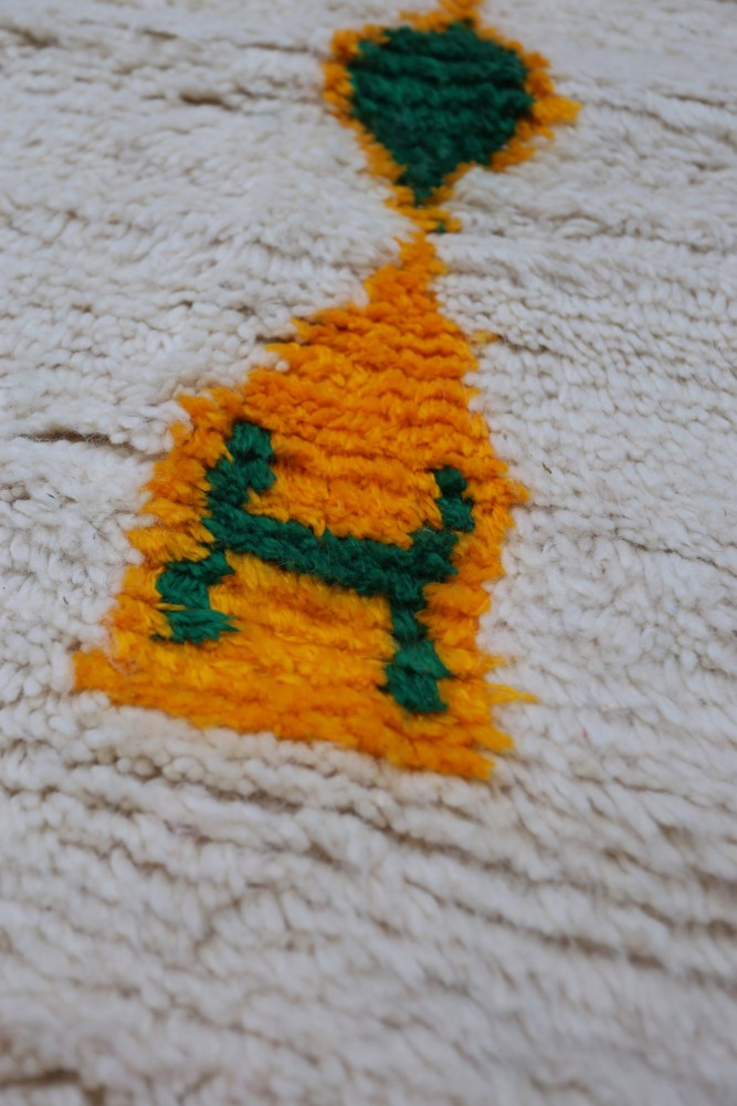 This Berber carpet, known as Azilal, gets its name from the Azilal region in Morocco where it was handmade on a traditional wooden loom. Its patterns represent the moods, loves, and sorrows of the weaver at the time of creation. Once this colorful Berber carpet is made, she will create another one totally different, based on her current emotions. Each piece is therefore unique.