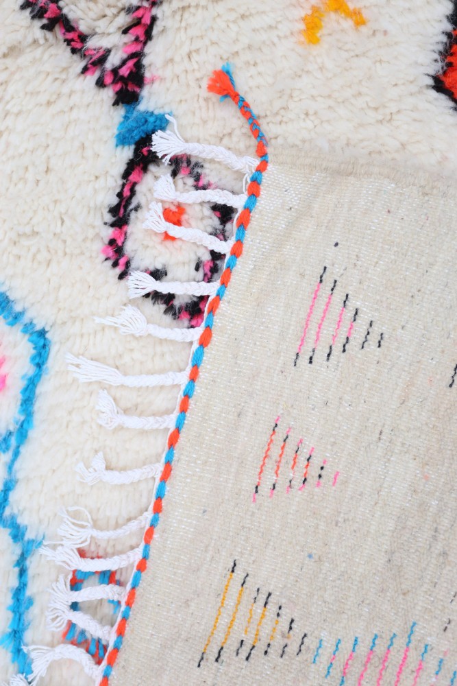 This Berber carpet called Azilal gets its name from the Azilal region in Morocco where it was handcrafted on a traditional wooden loom. Its patterns represent the weaver’s moods, loves, and sorrows at the time of creation. Once this colorful Berber carpet is created, she will make another one entirely different, based on her current emotions. Each piece is therefore unique.