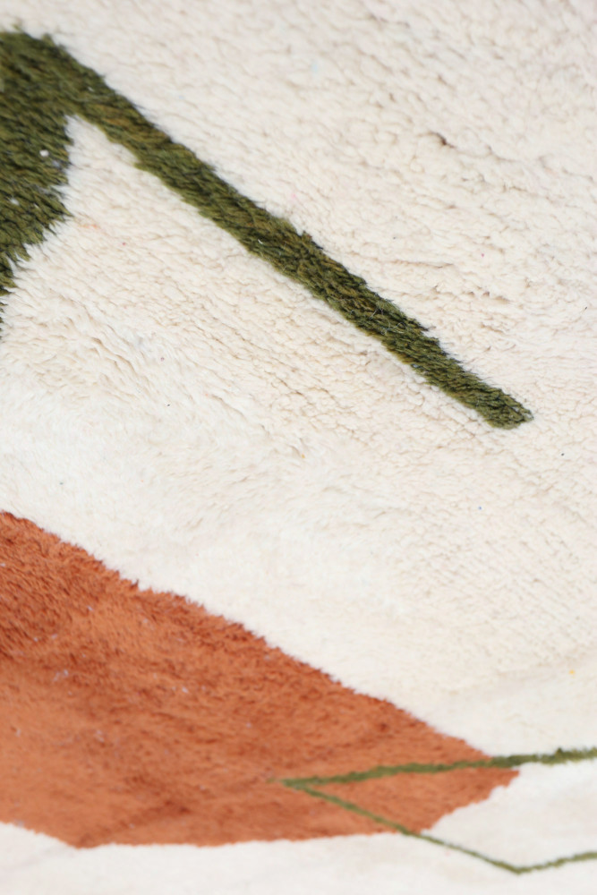 This Berber carpet called Azilal gets its name from the Azilal region in Morocco where it was handcrafted on a traditional wooden loom. Its patterns represent the weaver’s moods, loves, and sorrows at the time of creation. Once this colorful Berber carpet is created, she will make another one entirely different, based on her current emotions. Each piece is therefore unique.