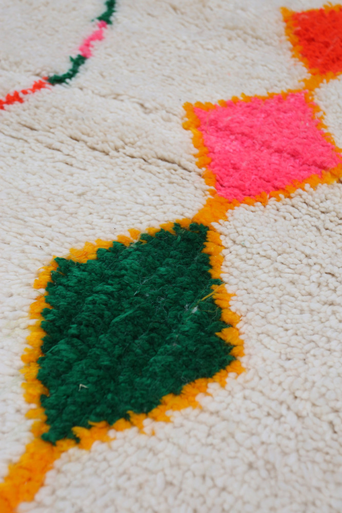Azilal Rug made of sheep wool handcrafted on a traditional loom in the Atlas Mountains in Morocco.