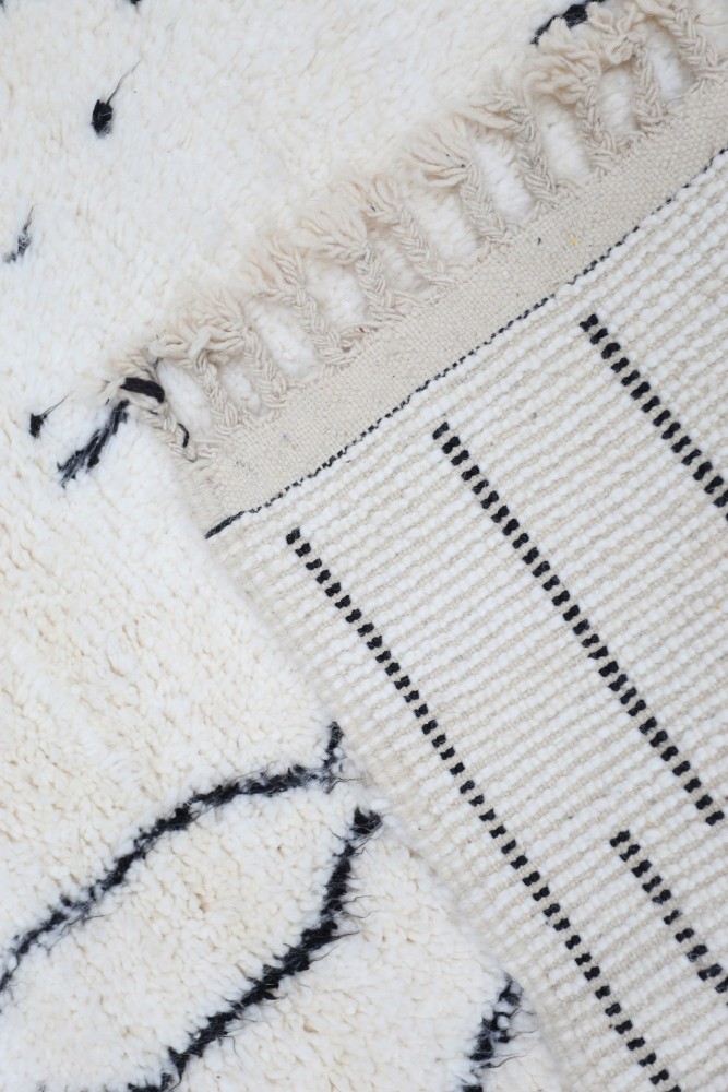 Beni Ouarain Rug made of sheep wool, handcrafted on a traditional loom in the Atlas Mountains of Morocco.