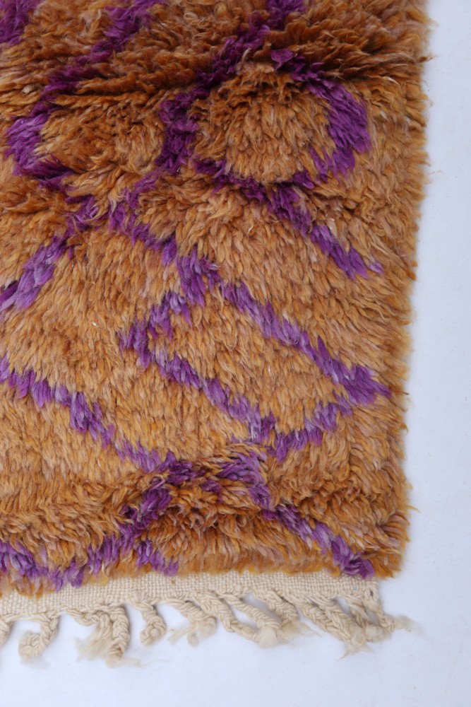 This Berber carpet called Azilal gets its name from the Azilal region in Morocco where it was handcrafted on a traditional wooden loom. Its patterns represent the weaver’s moods, loves, and sorrows at the time of creation. Once this colorful Berber carpet is created, she will make another one entirely different, based on her current emotions. Each piece is therefore unique.