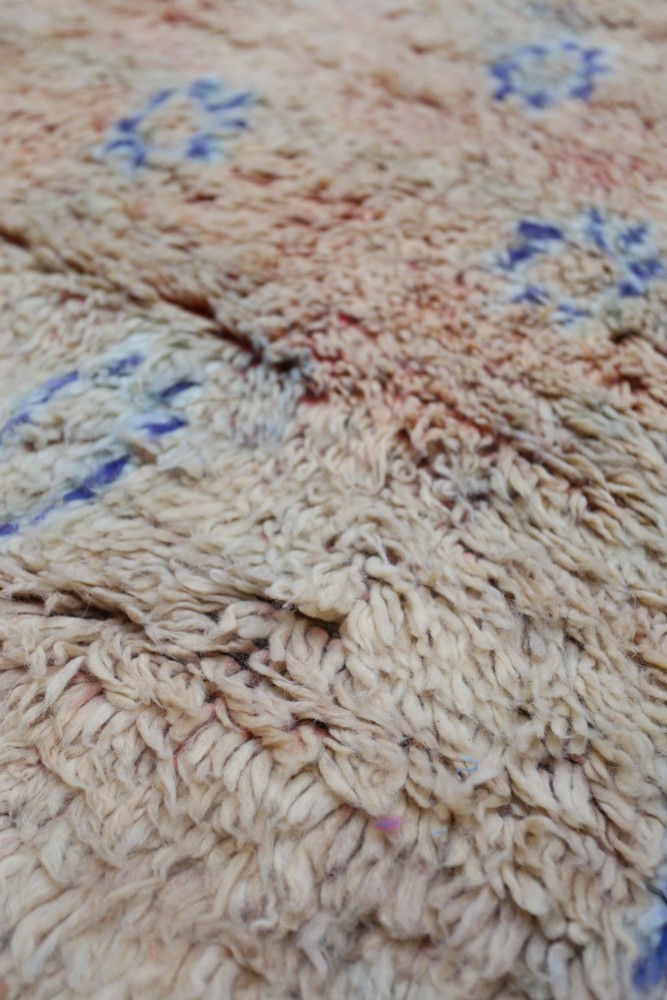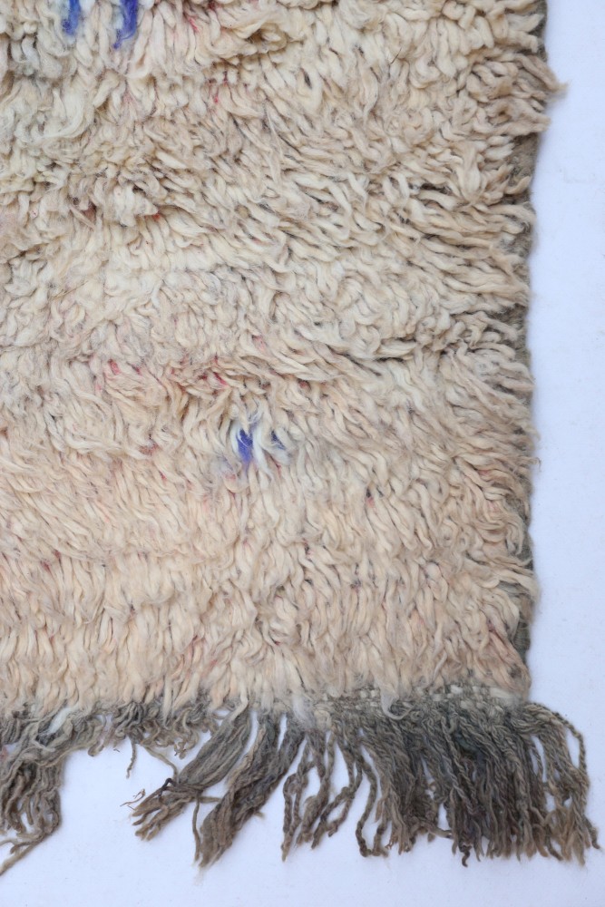 This Berber carpet called Azilal gets its name from the Azilal region in Morocco where it was handcrafted on a traditional wooden loom. Its patterns represent the weaver’s moods, loves, and sorrows at the time of creation. Once this colorful Berber carpet is created, she will make another one entirely different, based on her current emotions. Each piece is therefore unique.