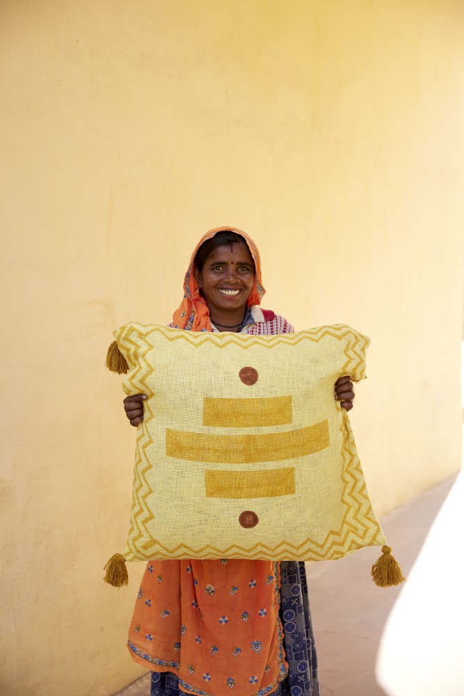 The Californian brand collaborates with artisans in India who hand-weave each piece using traditional craftsmanship.