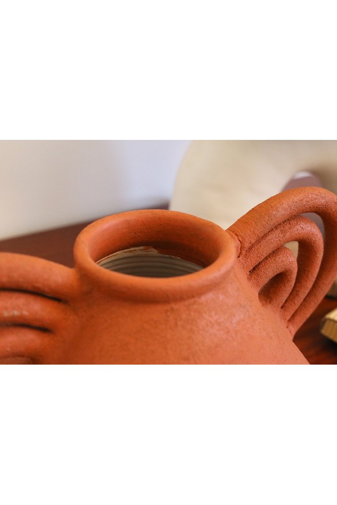 Terracotta ceramic vase with handles. Handmade in Morocco. -