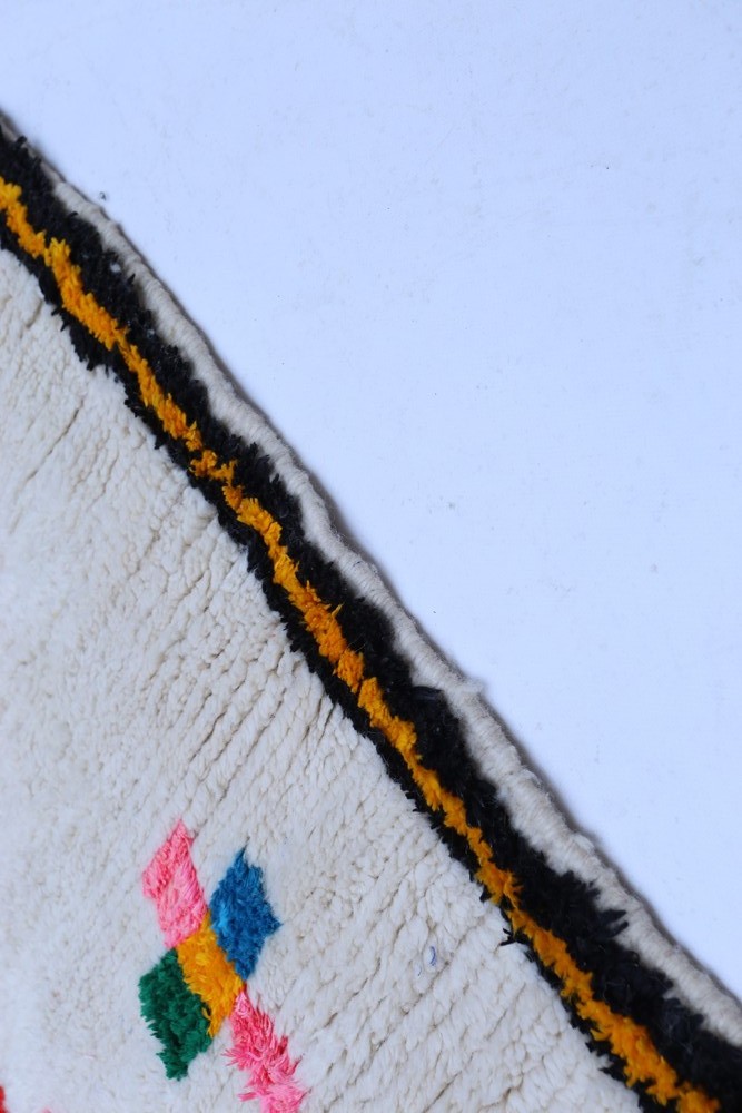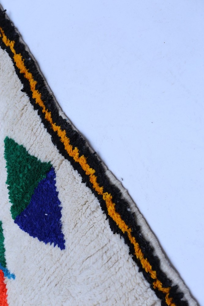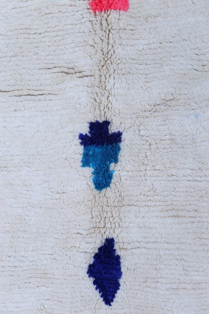 Esta alfombra bereber llamada Azilal recibe su nombre de la región de Azilal en Marruecos, donde ha sido confeccionada a mano en un telar tradicional de madera. Sus diseños representan los estados de ánimo, amores y penas de la tejedora en el momento de su creación. Una vez que se ha creado esta alfombra bereber de colores, ella creará otra totalmente diferente, dependiendo de sus emociones en ese momento. Cada pieza es única.