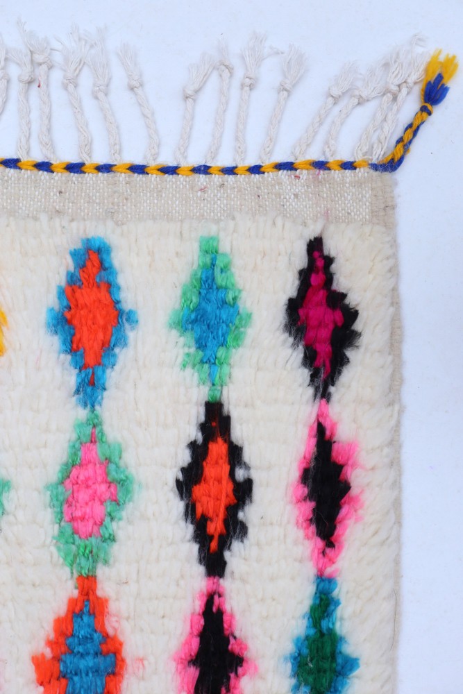 Tapis Azilal de lana de oveja, confeccionado a mano en un telar tradicional en las montañas del Atlas en Marruecos.