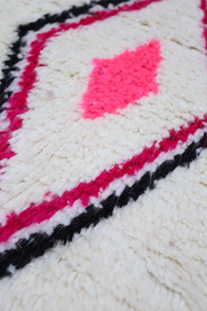 Tapis Azilal de lana de oveja, confeccionado a mano en un telar tradicional en las montañas del Atlas en Marruecos.