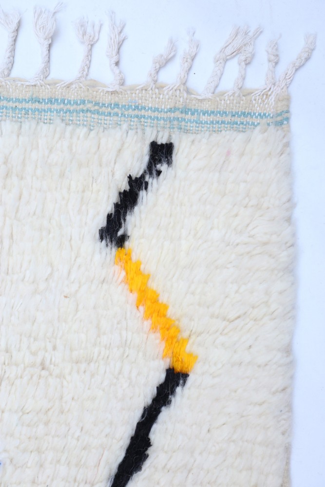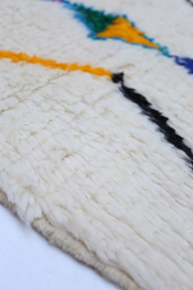 Esta alfombra bereber llamada Azilal recibe su nombre de la región de Azilal en Marruecos, donde ha sido confeccionada a mano en un telar tradicional de madera. Sus diseños representan los estados de ánimo, amores y penas de la tejedora en el momento de su creación. Una vez que se ha creado esta alfombra bereber de colores, ella creará otra totalmente diferente, dependiendo de sus emociones en ese momento. Cada pieza es única.