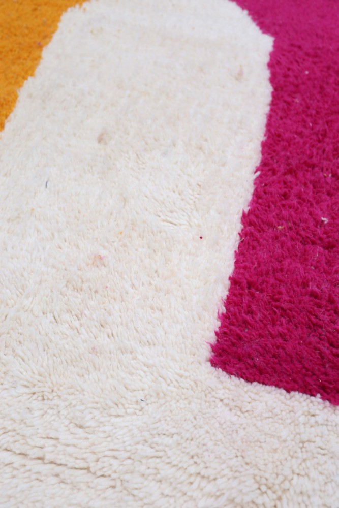Tapis Azilal en lana de oveja tejido a mano en un telar tradicional en las montañas del Atlas en Marruecos.