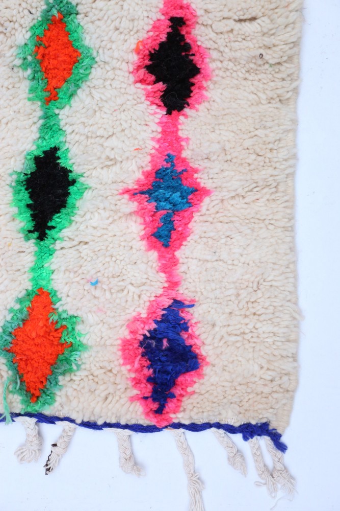 Tapis Azilal de lana de oveja, confeccionado a mano en un telar tradicional en las montañas del Atlas en Marruecos.