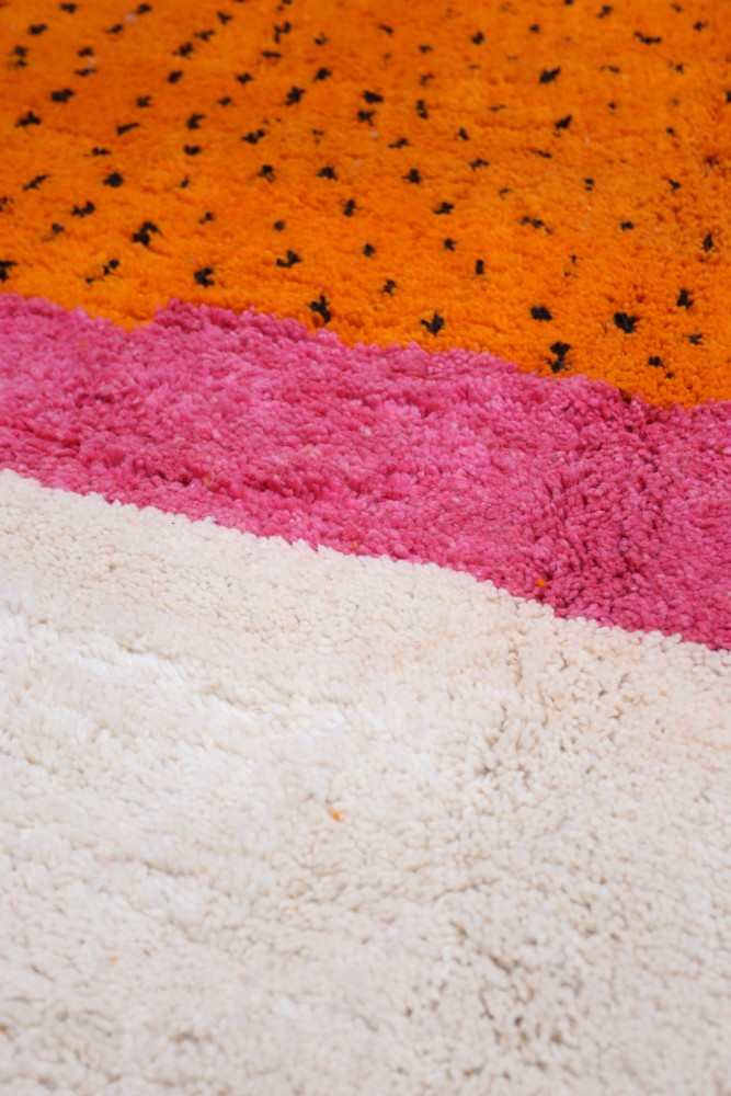 Tapis Azilal en lana de oveja tejido a mano en un telar tradicional en las montañas del Atlas en Marruecos.