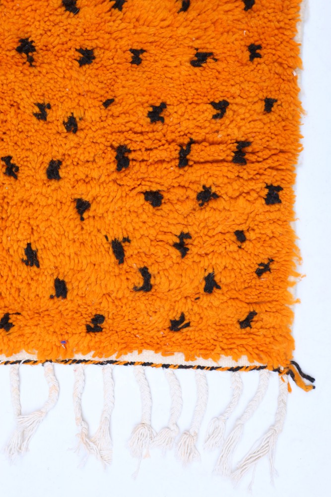 Esta alfombra bereber llamada Azilal recibe su nombre de la región de Azilal en Marruecos, donde ha sido confeccionada a mano en un telar tradicional de madera. Sus diseños representan los estados de ánimo, amores y penas de la tejedora en el momento de su creación. Una vez que se ha creado esta alfombra bereber de colores, ella creará otra totalmente diferente, dependiendo de sus emociones en ese momento. Cada pieza es única.