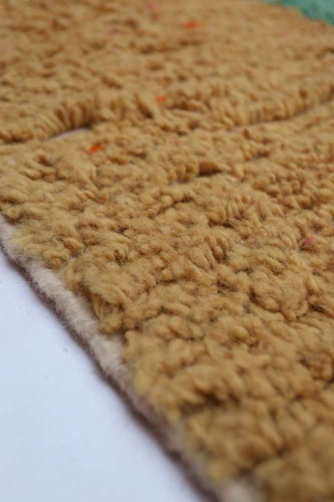 Esta alfombra bereber llamada Azilal recibe su nombre de la región de Azilal en Marruecos, donde ha sido confeccionada a mano en un telar tradicional de madera. Sus diseños representan los estados de ánimo, amores y penas de la tejedora en el momento de su creación. Una vez que se ha creado esta alfombra bereber de colores, ella creará otra totalmente diferente, dependiendo de sus emociones en ese momento. Cada pieza es única.