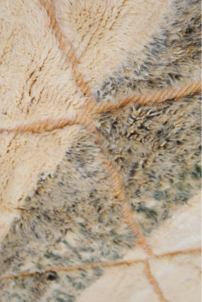 Esta alfombra bereber llamada Azilal recibe su nombre de la región de Azilal en Marruecos, donde ha sido confeccionada a mano en un telar tradicional de madera. Sus diseños representan los estados de ánimo, amores y penas de la tejedora en el momento de su creación. Una vez que se ha creado esta alfombra bereber de colores, ella creará otra totalmente diferente, dependiendo de sus emociones en ese momento. Cada pieza es única.