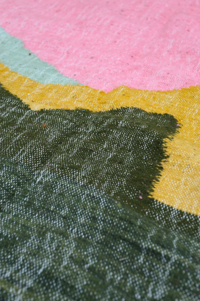 Esta alfombra bereber llamada Azilal recibe su nombre de la región de Azilal en Marruecos, donde ha sido confeccionada a mano en un telar tradicional de madera. Sus diseños representan los sentimientos, amores y penas de la tejedora en el momento de su creación. Una vez que se ha creado esta alfombra bereber colorida, ella creará otra totalmente diferente, según sus emociones del momento. Cada pieza es única.