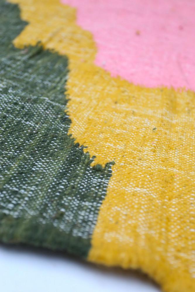 Alfombra Kilim en lana hecha a mano en un telar tradicional en las montañas del Atlas en Marruecos.