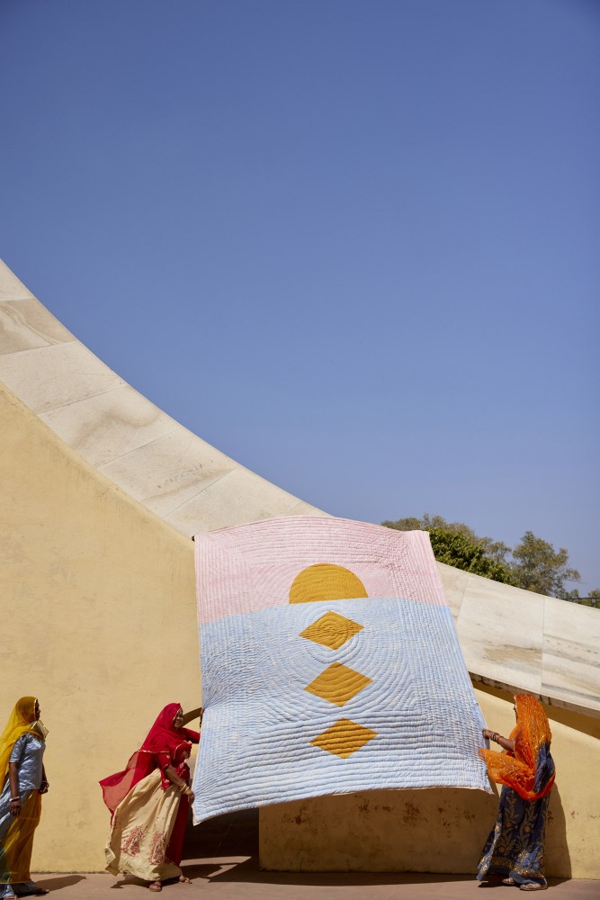 La marca californiana colabora con artesanos en la India, quienes tejen cada pieza a mano con habilidades tradicionales.