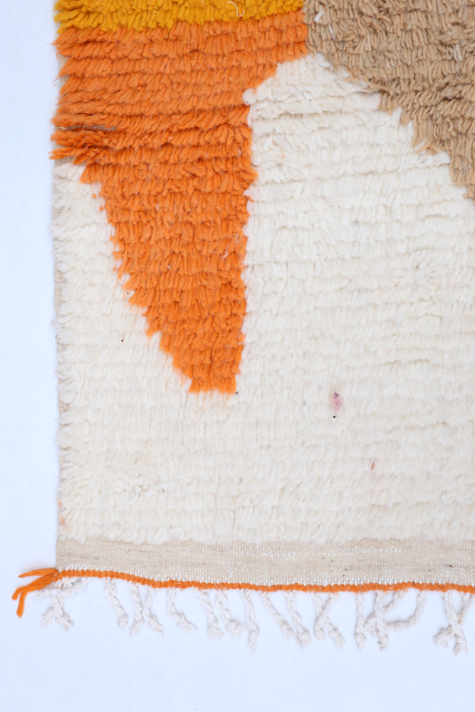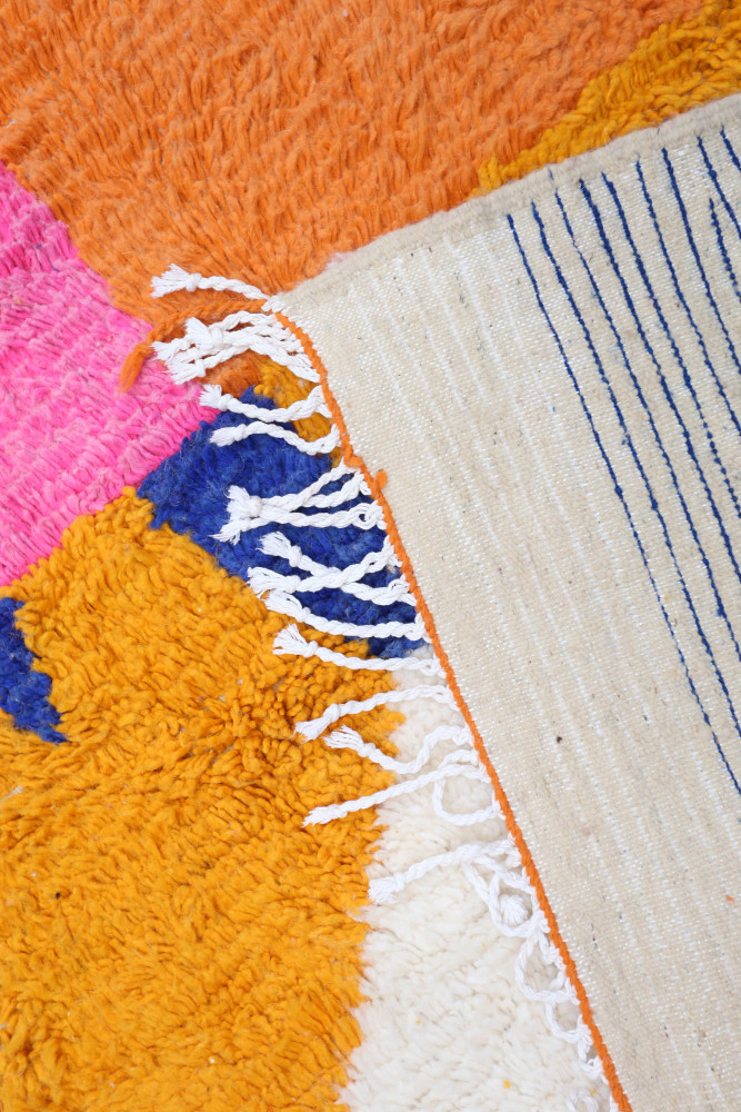 Esta alfombra bereber llamada Azilal recibe su nombre de la región de Azilal en Marruecos, donde ha sido confeccionada a mano en un telar tradicional de madera. Sus diseños representan los estados de ánimo, amores y penas de la tejedora en el momento de su creación. Una vez que se ha creado esta alfombra bereber de colores, ella creará otra totalmente diferente, dependiendo de sus emociones en ese momento. Cada pieza es única. Esta alfombra bereber representa más de un mes de tejido. Descubre en video cómo se crean las alfombras bereberes THEM haciendo clic aquí. Nuestras alfombras con un fondo blanco y diseños coloridos siempre tienen un fondo blanco de lana. Los colores pueden ser de algodón o lana. Los colores muy brillantes suelen ser de algodón y los colores con un aspecto más natural son de lana. Nuestras alfombras totalmente coloridas son 100% de lana. ENVÍO Todos los paquetes se envían desde Francia. No hay gastos de aduana para pedidos realizados en un país de la Unión Europea. Para pedidos fuera de la UE, pueden aplicarse gastos de aduana. Realizamos envíos a todo el mundo y todos los pedidos se envían cada 7 a 15 días. Para Francia: puedes elegir entre envío a punto de recogida con Mondial Relay o envío a domicilio con Colissimo. Para el resto del mundo: el costo del envío varía según el país. Simplemente agrega la alfombra al carrito, ingresa tu dirección y se te indicará el costo exacto del envío. DEVOLUCIÓN Tienes un plazo de 14 días a partir de la entrega de tu paquete para solicitar un cambio, un crédito o un reembolso. Para Francia: - Si deseas un cambio/crédito: todo es gratuito (la devolución y el envío del nuevo paquete corren por nuestra cuenta) - Si deseas un reembolso: los gastos de devolución corren por tu cuenta Para el resto del mundo: - Si deseas un cambio: los gastos de devolución corren por tu cuenta y el envío del nuevo paquete corre por nuestra cuenta - Si deseas un reembolso: los gastos de devolución corren por tu cuenta Sorprendentemente, las alfombras bereberes se cuidan fácilmente. Hay que tener en cuenta que estas piezas cargadas de historia no tienen como objetivo principal ser un objeto decorativo. Las mujeres bereberes las tejen y las utilizan como cobertor o alfombra para aislamiento. La calidad excepcional del tejido permite que las alfombras bereberes se mantengan con el tiempo y envejezcan muy bien. Para su cuidado, puedes pasar la aspiradora sobre ella una vez por semana como máximo para no dañar la lana. Si no puedes sacudirla, dale la vuelta durante unas horas una vez al mes, todas las partículas de polvo caerán en profundidad. En caso de mancha, simplemente golpea con un paño húmedo, a menudo es suficiente. De lo contrario, agrega vinagre de alcohol o jabón de Marsella con mucha agua.Más información