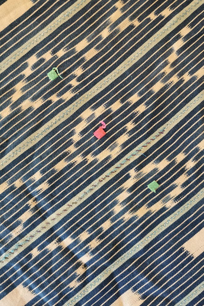 Esta tela llamada Bogolan solía ser utilizada como pareo atado por las mujeres malienses. Tejida a mano, luego era teñida con elementos naturales de la tierra y se consideraba impregnada de energías vitales. Algunas horas al sol permitían que los pigmentos se fijaran.