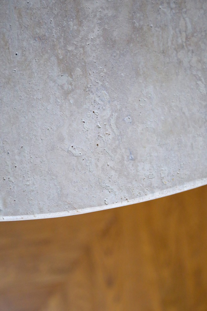 Mesa de centro de travertino diseñada por Marion, la fundadora de Them, y elaborada de forma 100% artesanal en Marruecos en uno de nuestros talentosos talleres asociados.