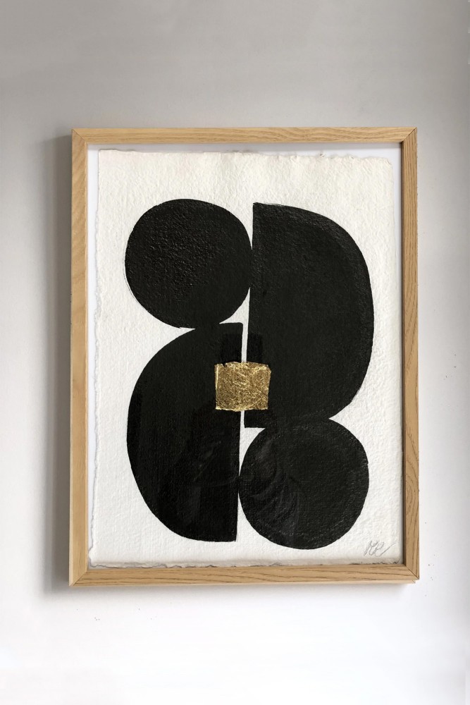 Toile encre de Chine et feuille d'or. Floating House.