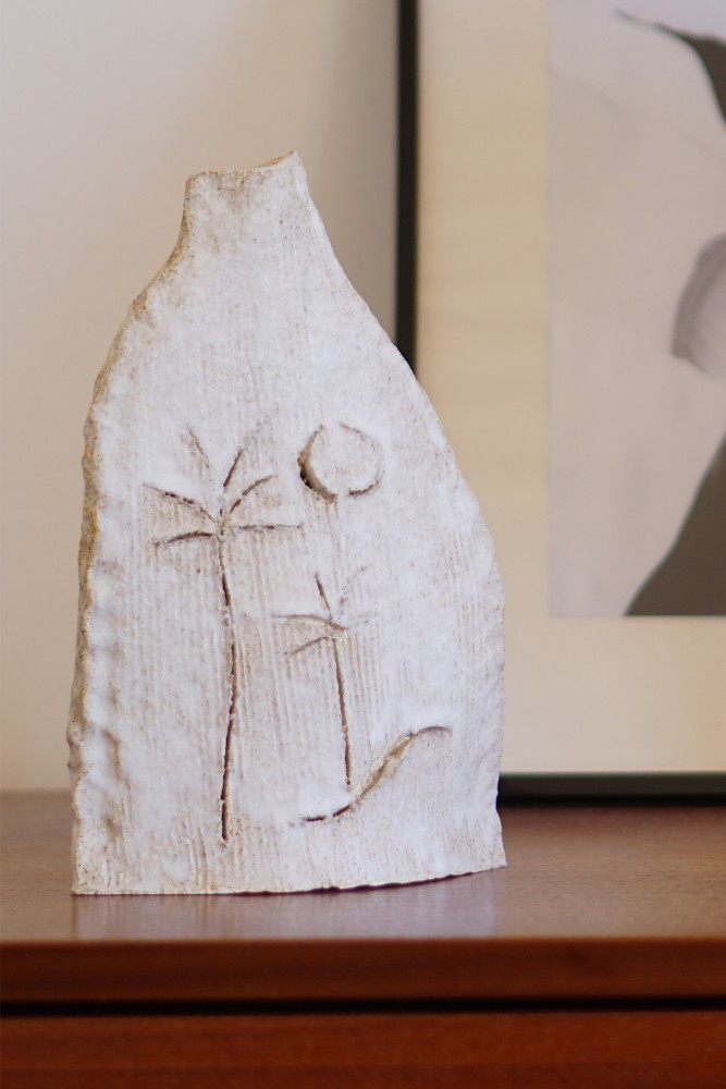 Petit vase gravé en céramique fabriqué de façon artisanale en Espagne.