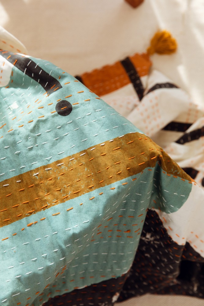 Chez CQC LA, ils célèbrent l’art et la tradition à travers la technique d’impression à la planche, héritée du Rajasthan et du Gujarat. Chaque motif est minutieusement imprimé à la main grâce à des blocs de bois sculptés, révélant des couleurs vibrantes et des détails uniques. En préservant cet artisanat ancestral, ils soutiennent aussi une cause essentielle : pour chaque produit acheté, un enfant en Inde reçoit un repas pendant un mois grâce à leur partenariat avec la Fondation Akshaya Patra.