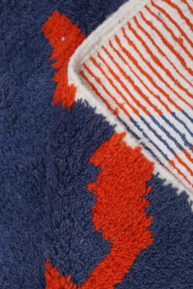 Ce tapis berbère que l'on appelle Azilal tient son nom de la région d'Azilal au Maroc où il a été confectionné à la main sur un métier à tisser traditionnel en bois. Ses motifs représentent les humeurs, les amours, les peines de la tisseuse au moment de sa création. Une fois ce tapis berbère coloré créé, elle en confectionnera un autre totalement différent, en fonction de ses émotions du moment. Chaque pièce est donc unique.