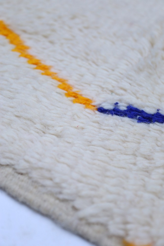 Ce tapis berbère que l'on appelle Azilal tient son nom de la région d'Azilal au Maroc où il a été confectionné à la main sur un métier à tisser traditionnel en bois. Ses motifs représentent les humeurs, les amours, les peines de la tisseuse au moment de sa création. Une fois ce tapis berbère coloré créé, elle en confectionnera un autre totalement différent, en fonction de ses émotions du moment. Chaque pièce est donc unique.