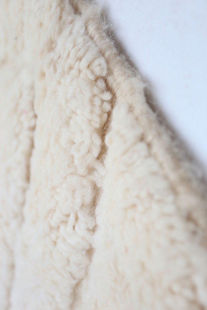 Très grand tapis berbère Béni Ouarain blanc uni avec des losanges gravés