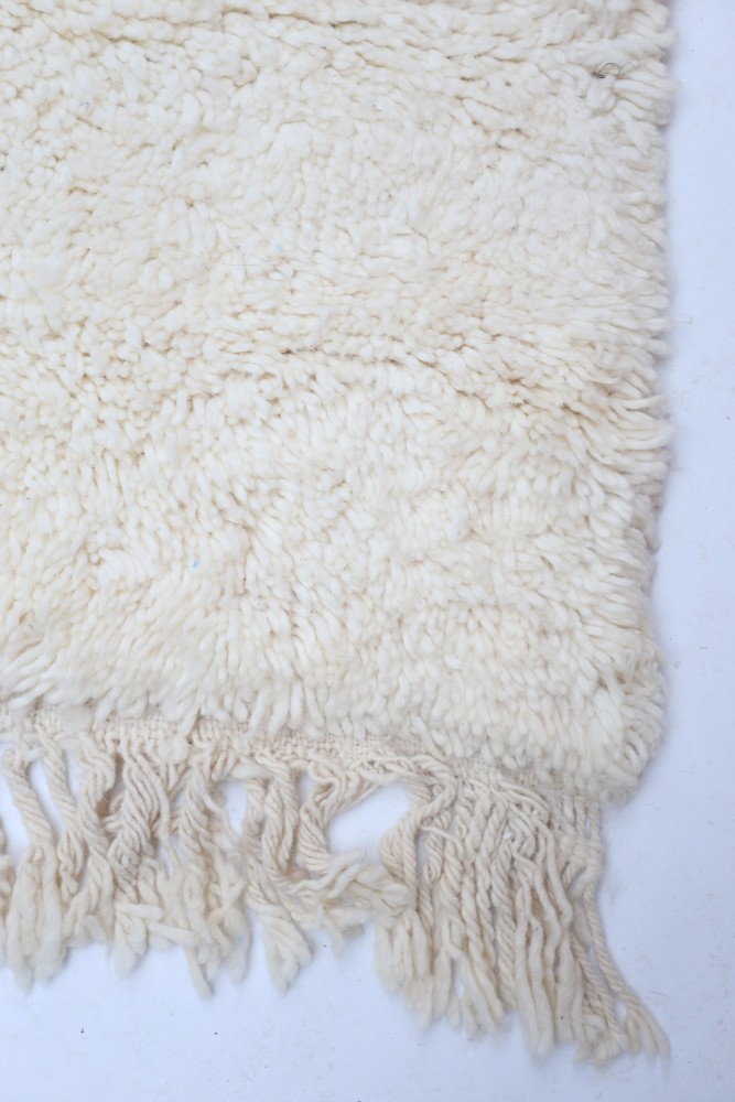 Nos tapis avec un fond blanc et des dessins colorés sont toujours avec un fond blanc en laine. Les couleurs peuvent être soit en coton soit en laine. Les couleurs très vives sont généralement en coton et les couleurs qui ont un rendu plus naturel sont elles en laine. Nos tapis qui sont tout colorés sont eux 100% en laine.